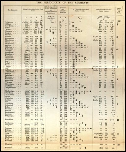 Sin embargo no fue hasta mediados del siglo XIX, y gracias a los aportes del famoso químico ruso Dimitri Mendeléiev que los elementos químicos quedaron fijados y clasificados en la famosa tabla que lleva su nombre. Como toda ciencia la idea de establecer este mapa no sólo tiene una intención nemotécnica (otros dirán: “tortura escolar”), en realidad lo que buscaba era la predicción de las características químicas y físicas de los elementos aun no descubiertos; función que ha cumplido con creces.